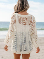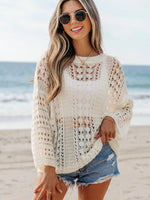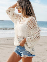 - White Hollow Out Knit Bracelet Sleeve Drop Shoulder Sweater