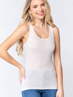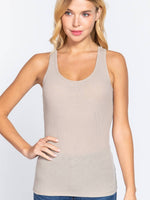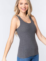 FITTED RACERBACK RIB TANK TOP Fabric Content: 57% COTTON, 38% POLYESTER, 5% SPANDEX Spring collection. Everyday casual. Perfect pairing with shorts, pants or denim jeans.