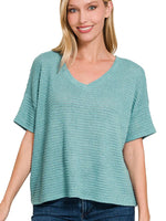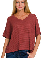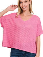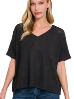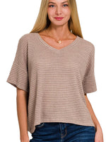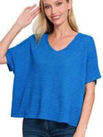 Short Sleeve Relaxed Fit Summer Sweater Fabric Content: 69% POLYESTER 29% RAYON 2% SPANDEX