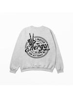 Chill vibes only with our 'I Match Energy' sweatshirt. This cozy number features a cool skeleton hand throwing up a peace sign, perfect for those who vibe on a whole different frequency. Made for comfort and a statement that's as relaxed as you are. It's more than just a sweatshirt; it's your new go-to for matching the world's energy, one peace sign at a time.