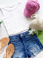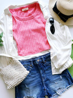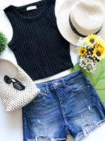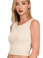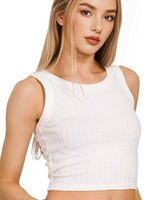 Ribbed Boat Neck Cropped Sleeveless Top TOTAL BODY LENGTH: 16.5", BUST: 28" approx. - MEASURED FROM SMALL Material: 60% RAYON 28% POLYESTER 22% NYLON